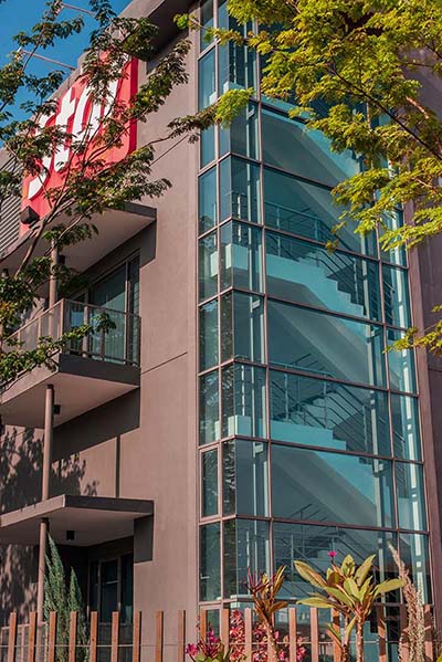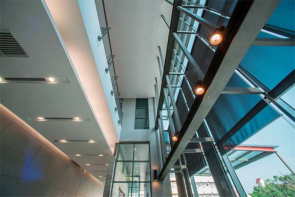 Main entrance stands a free standing bare faced concrete wall to greet visitors representing the company’s role in journalism and in support of free speech and reporting on factual basis. Services are grouped on the east side of the building to free up space for a multimedia open plan workspace and amenities open for public such as multi-purpose hall and research centre. All staff enjoy abundant daylight and view through glass windows. The interior space are designed to express externally with the usage of mass, void, shadow, and colours. The corporate red colour was used as feature colour of the building internally and externally. Horizontal aluminium sun shade louvres are incorporated onto windows to treat glare from sunlight and heat penetration into the building. End result is a simple and environmentally friendly building.