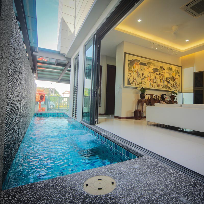 Green building features were incorporated such as double roofing system with insulation helps to keep heat gain at a minimum, sliding doors and windows are placed strategically around the façades to maximise cross ventilation and reduce reliance on artificial cooling solutions. For the water heater and kitchen, a centralised Liquefied Petroleum Gas (LPG) system was installed to be the main energy source. There is also a rainwater harvest system.