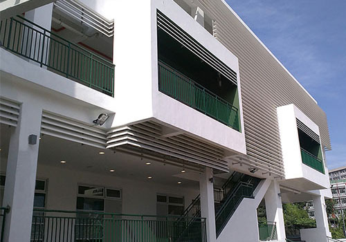 Green building design features are also provided such as sun shade screen for east-west facing, insulated roof, windows to maximize day light, openings for cross ventilation, rain water harvest system, water saving sanitary fittings, energy saving lights, and handicapped facilities.
