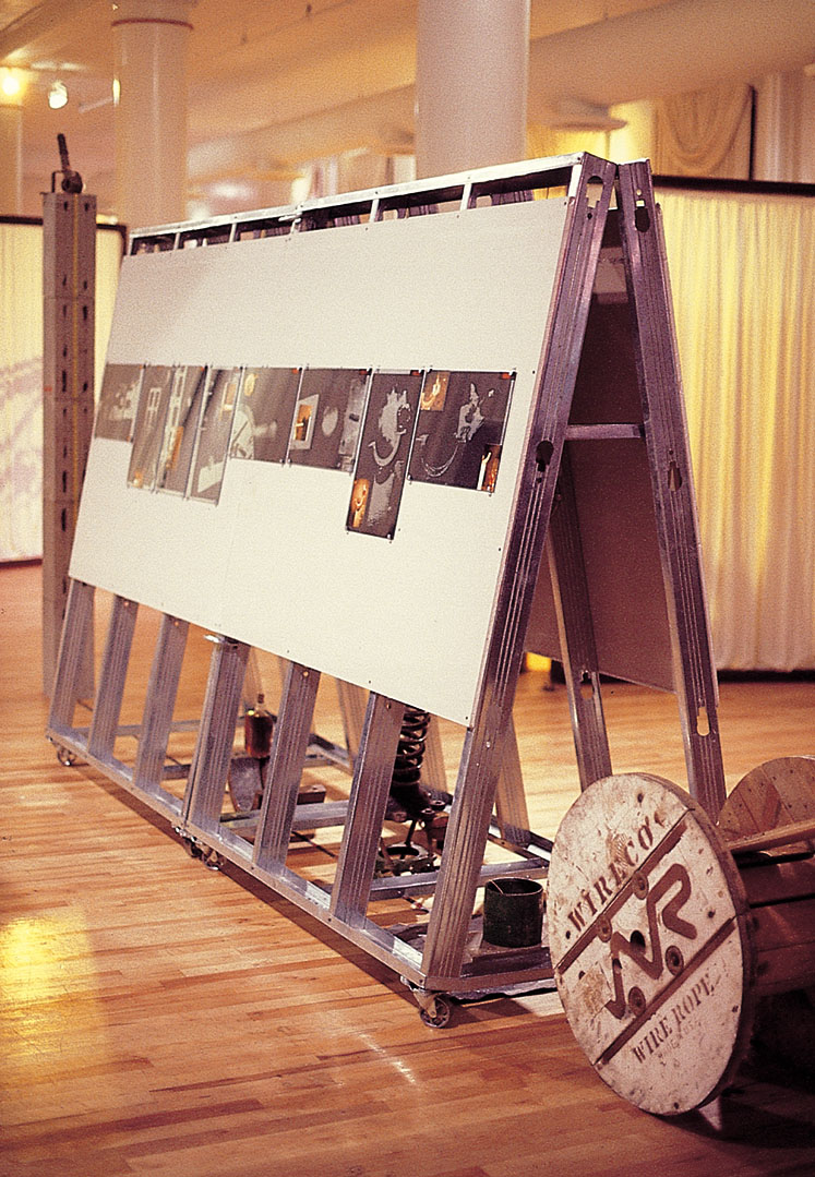 Kinetik Contraption Award Winning Travel Exhibition in major cities in USA. Installation include a video presentation of applying 6 simple machines of physics to form a contraption that pour from a bottle of Crown Royal Whisky to a copper cup.